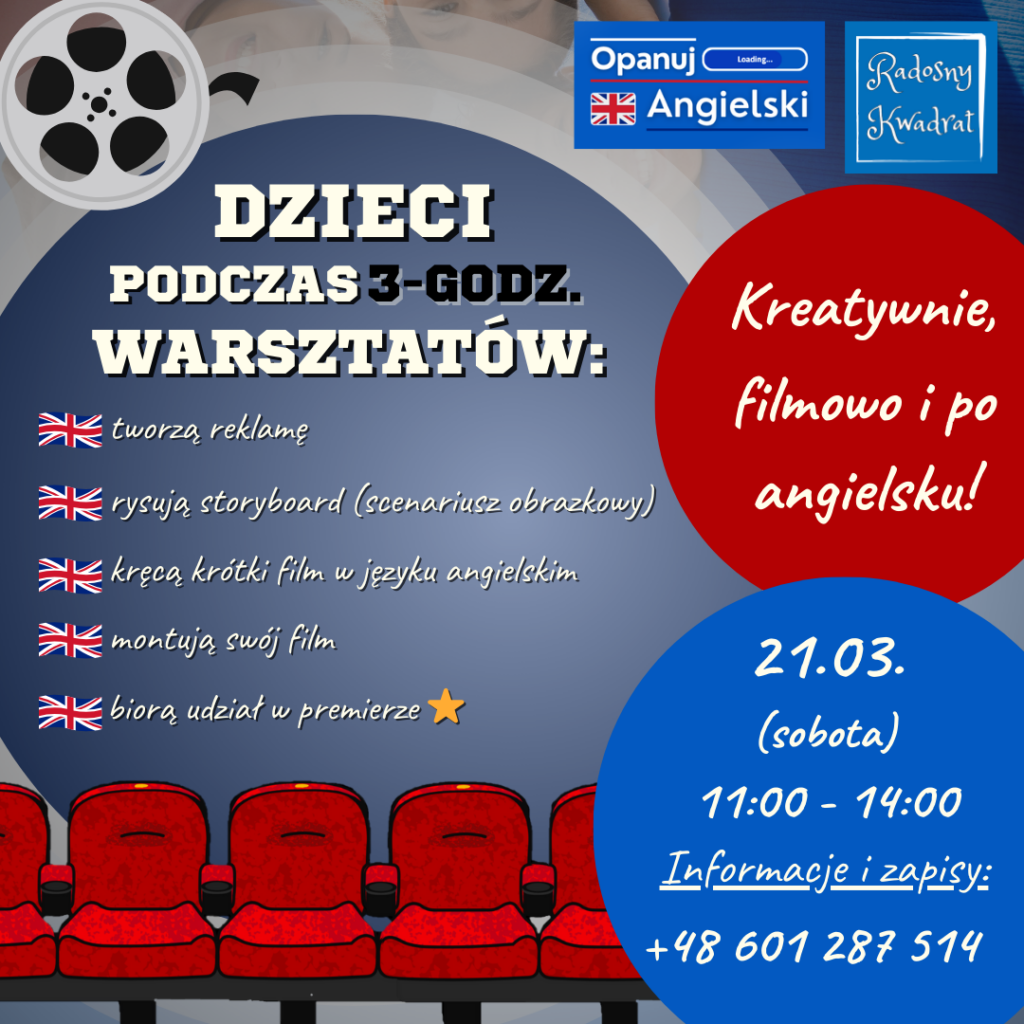 Zapraszamy na warsztaty filmowo – językowe dla dzieci ze szkół podstawowych 🎥🇬🇧
